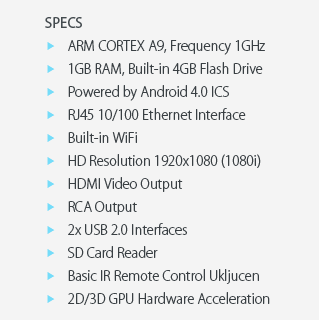 Android ICS, HD 1080p, Built in WiFi, VIP REMOTE